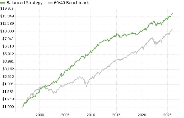 | Year | Balanced Strategy | 60/40 Benchmark |